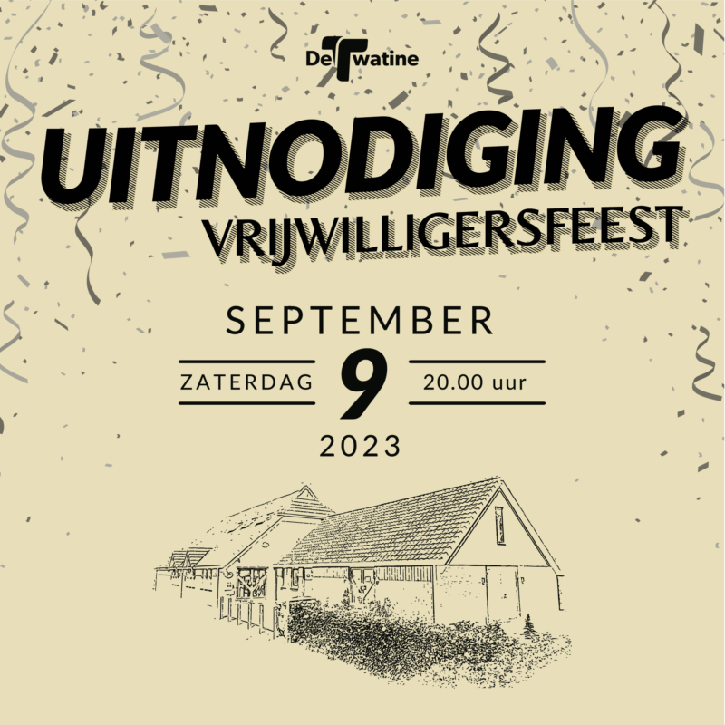Let op: over iets meer dan een week is het vrijwilligersfeest van De Twatine! Heb je een uitnodiging gekregen en ben je van de partij? Mail dan nog snel (uiterlijk zaterdag) even naar twatine(a)hotmail.nl, dan weten wij hoeveel eten en drinken we klaar moeten zetten 😉 Dit geldt natuurlijk alleen voor degene die dit nog […]